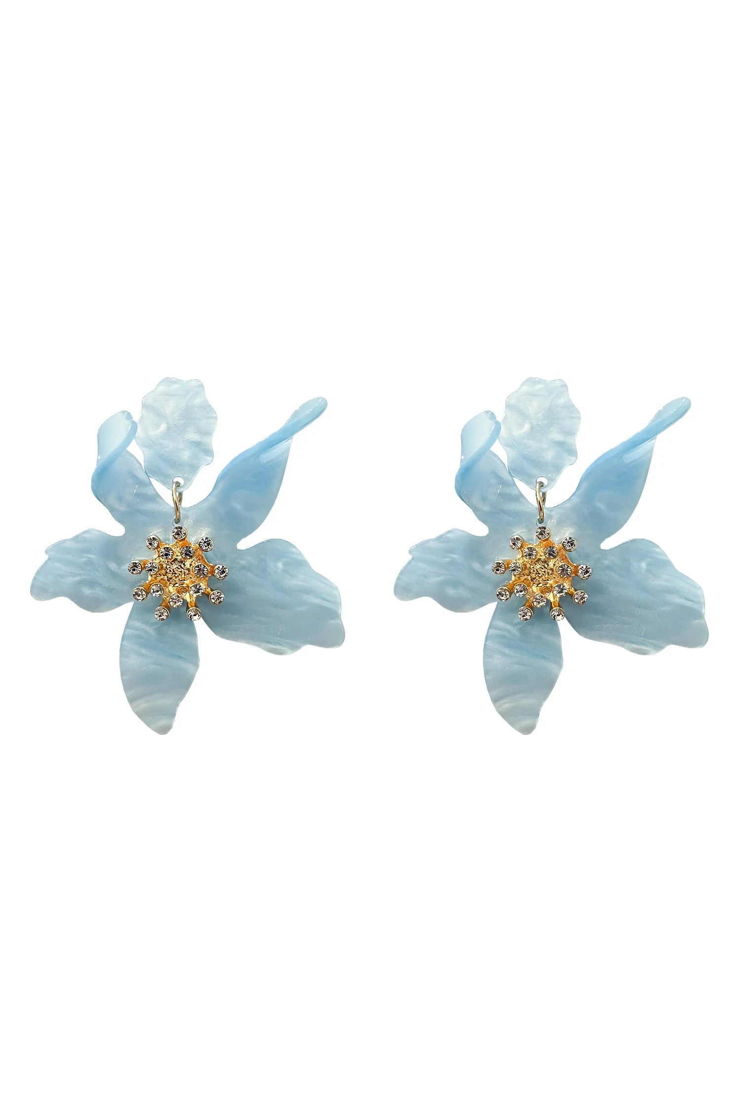 The Briella Blue Flower Earrings are the perfect statement piece for those girls who are wanting to stand out. Crafted with a blue acrylic flower with a gold centre with diamante embellishments.