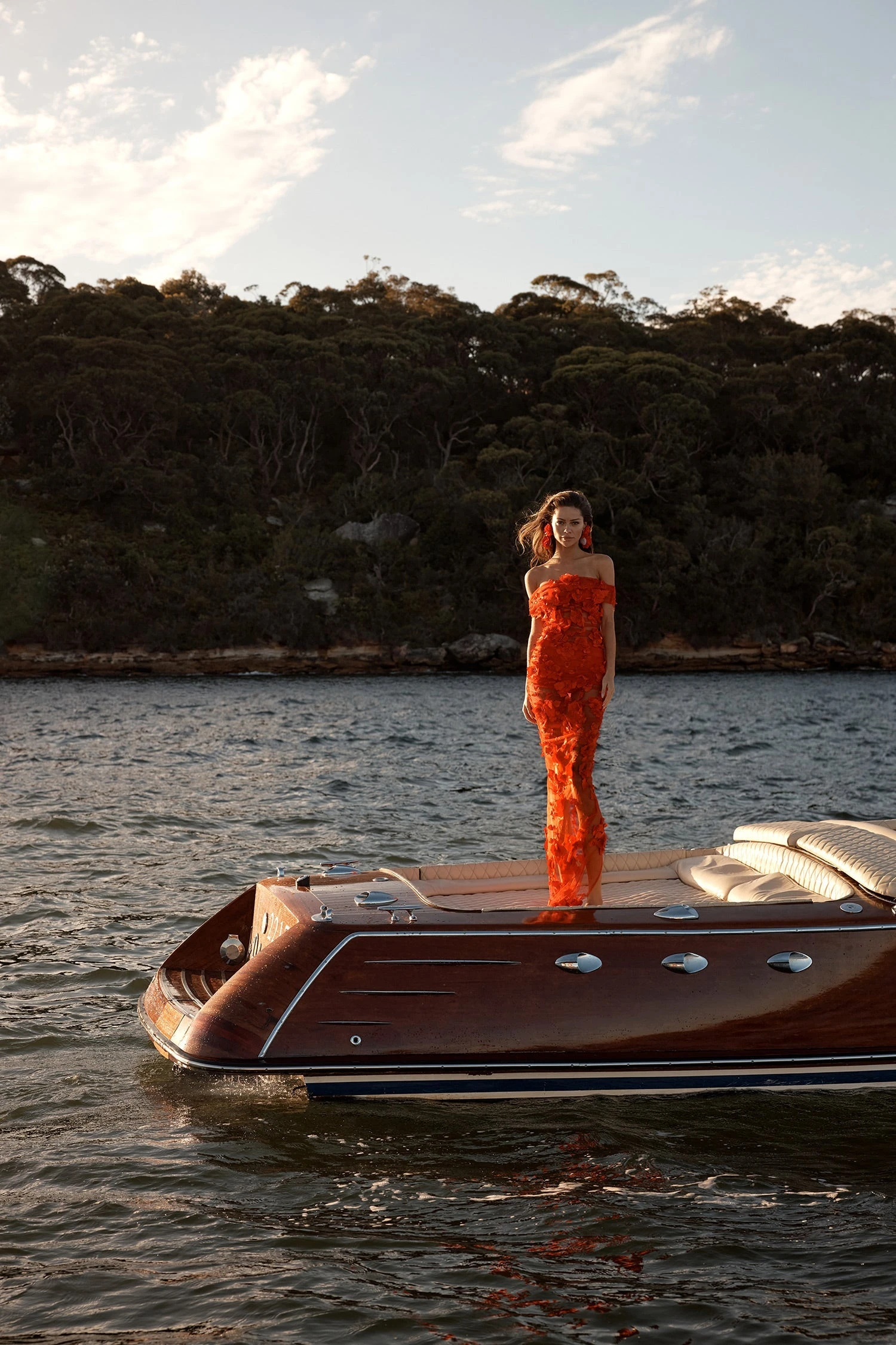 Meet the Florentina Dress – an embodiment of romance crafted from delicate sheer 3D floral fabric. With off-shoulder short sleeves, a classic straight neckline, and a chic fitted silhouette. Utilizing playful fabrics and simple silhouettes, the Florentina Dress embraces its feminine allure.