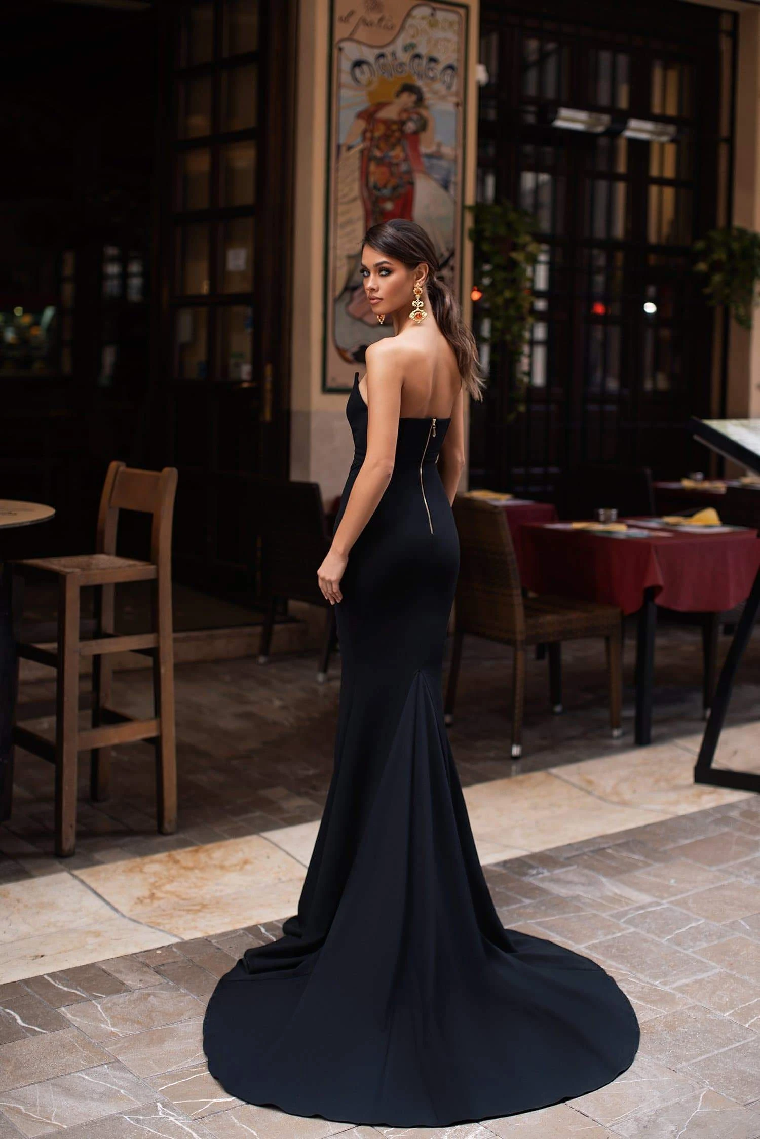 Sleek & stylish, the Gulsina Gown is a stunning black strapless mermaid gown with a train & flattering, on-trend scoop neckline. This gown hugs your figure & will make you look sexy & on-trend for your event. Made from stretchy crepe fabric & boning in the bustier.