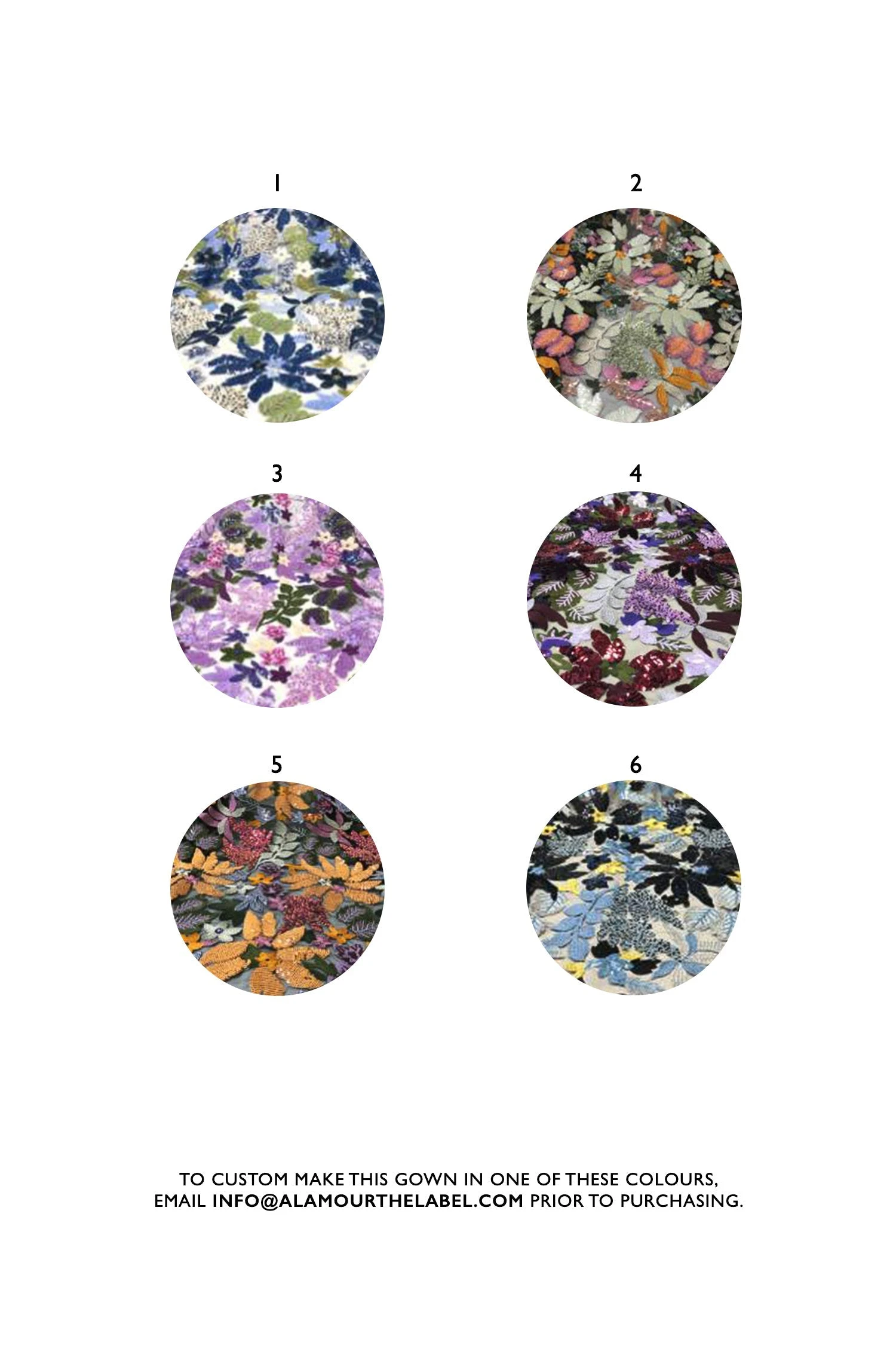 The Mariya Dress exudes confidence. With its bright floral statement print crafted in sequin fabric with embroidered flowers, it features a straight neckline a lace-up back, and an a-line fit. This statement dress will definitely be a crowd favourite. Mariya is suitable for weddings day or night.