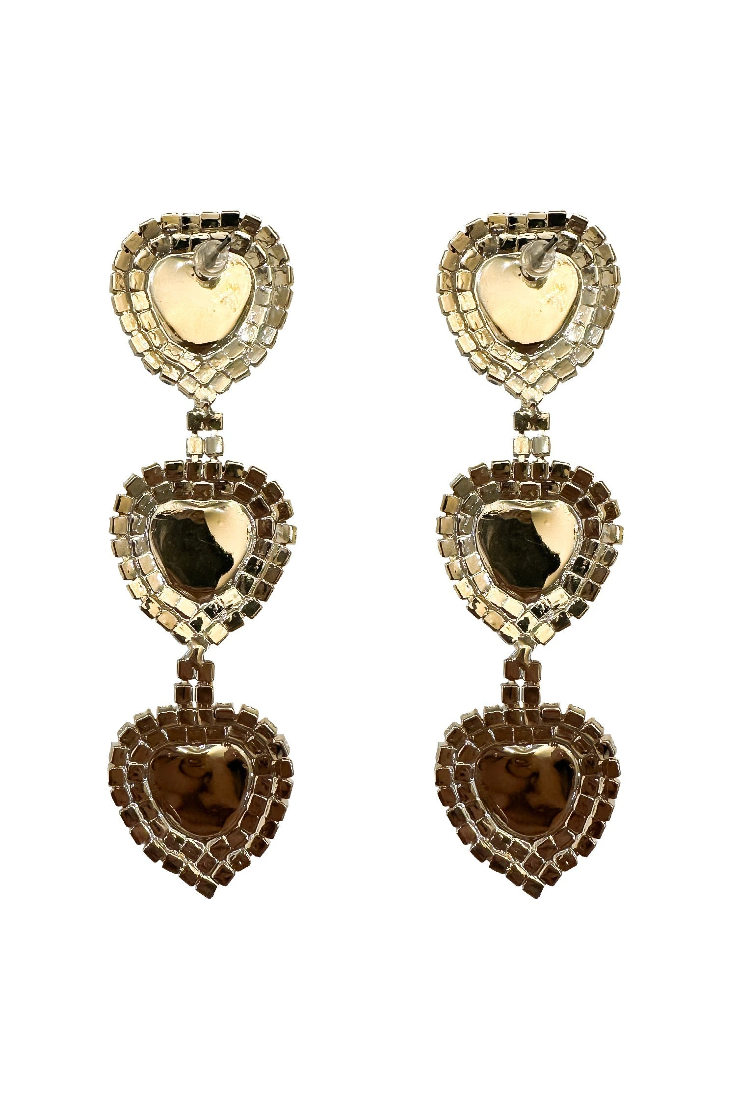 The Milian Fuchsia Diamante Earrings is one of many new additions to our earring collection. Embellished with pink gems and encrusted diamante pieces in a triple stacked heart shape, these earrings will be sure to make a statement.Â