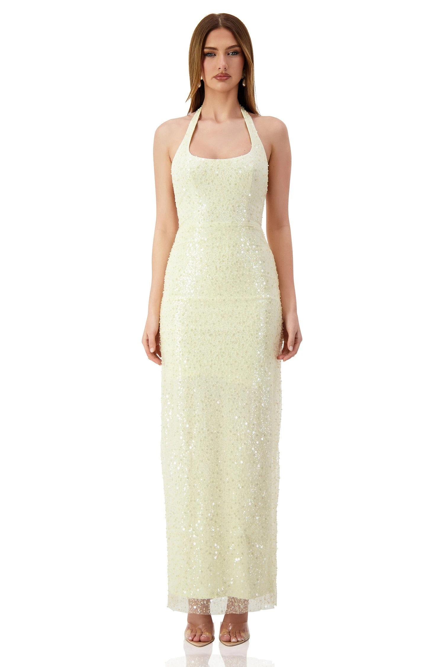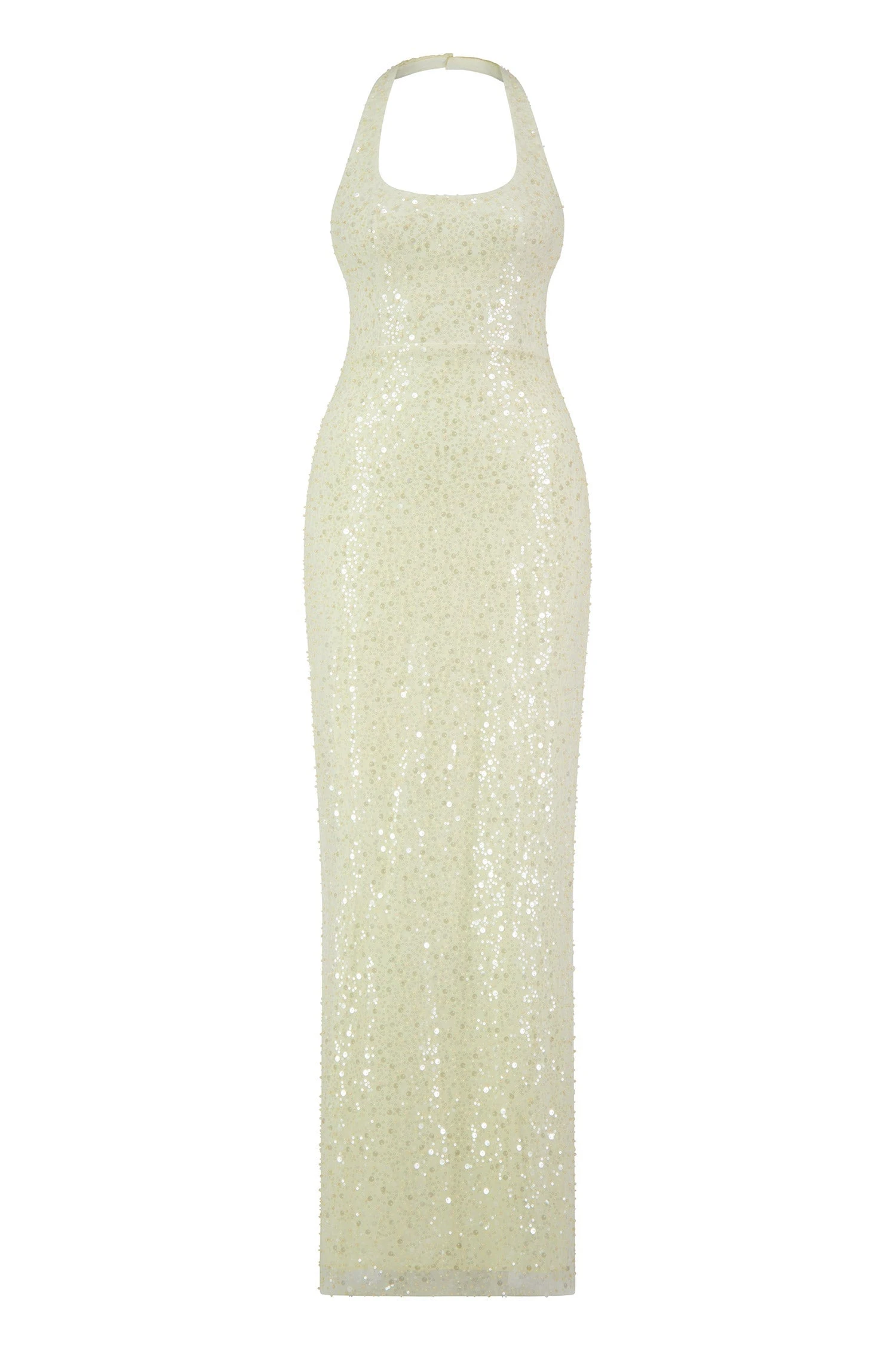 We are absolutely obsessed with the fit of the Romina dress. Featuring an elegant scoop halter neckline, a fitted shaped silhouette, and an open back with a split in the middle. This is our director’s favourite as it fits like a glove. Romina is made from our best-selling mini sequins fabric that is curve hugging and sparkles like no other, so you shine at your next event in Romina.